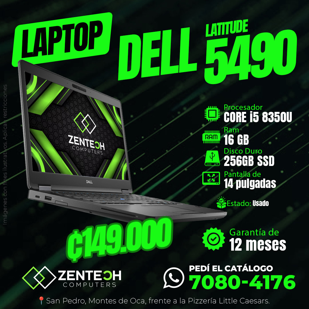 Características técnicas destacadas: Modelo: DELL Latitude 5490 Procesador: Intel Core i5 8350U (8.ª Generación) RAM: 16 GB Almacenamiento: 256 GB SSD Pantalla: 14 Pulgadas Estado: Usado Garantía: 12 meses
