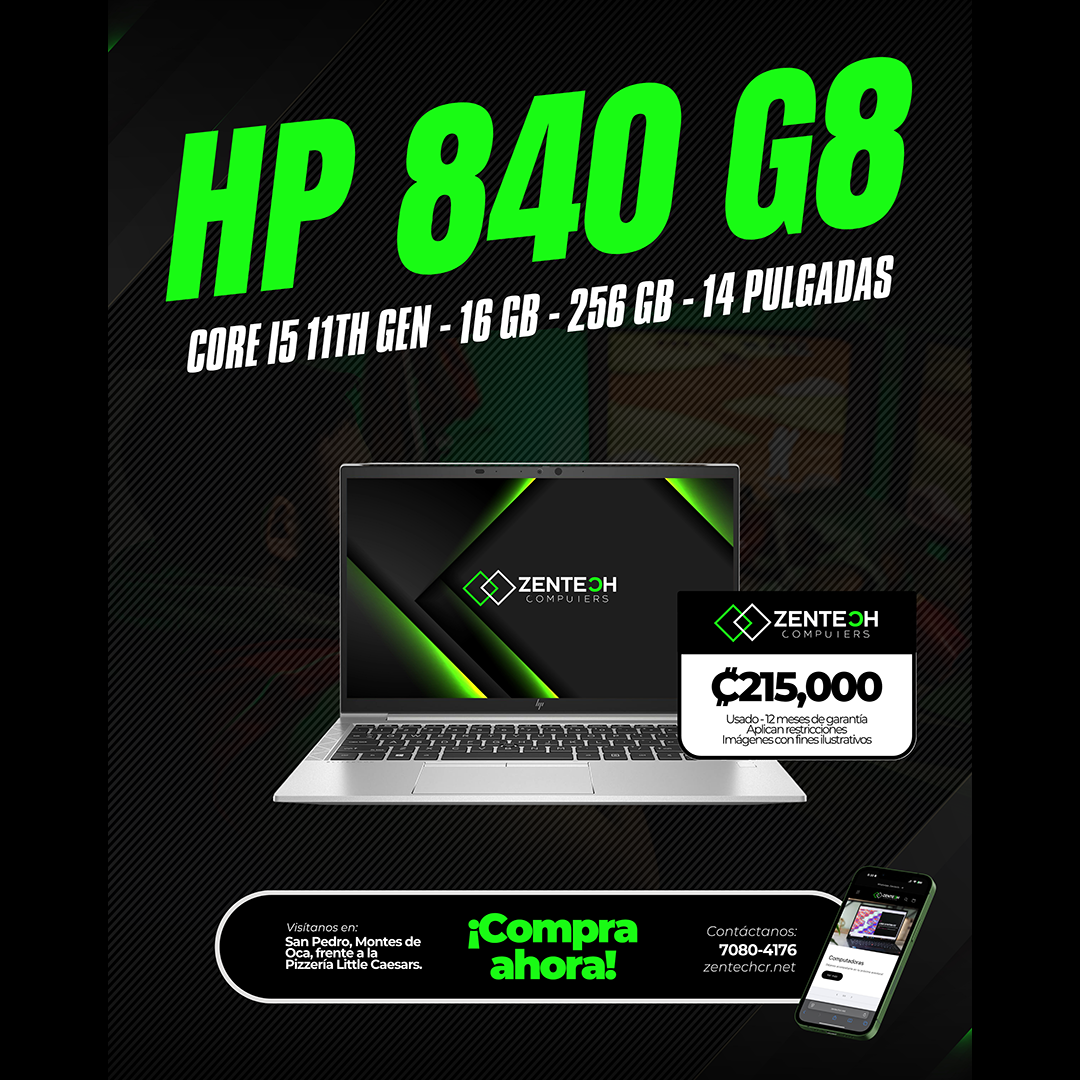 Palabras clave SEO: Laptop usada Costa Rica, HP EliteBook 840 G8 i5 11va Gen, notebook empresarial 14 pulgadas, portátil última generación, laptop para teletrabajo.