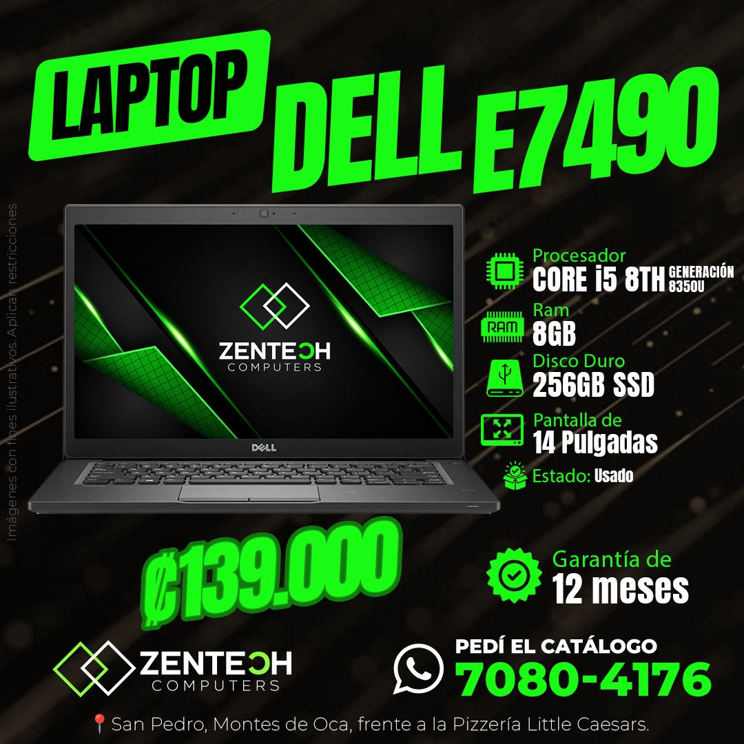 ¡Llévate la laptop ultraligera DELL Latitude 7490 usada a un precio increíble! Ideal para ejecutivos y portabilidad diaria. Con Core i5 8va Gen, 8 GB RAM y 256 GB SSD. Pantalla de 14 pulgadas y 12 meses de garantía. ¡Lo que estabas buscando!